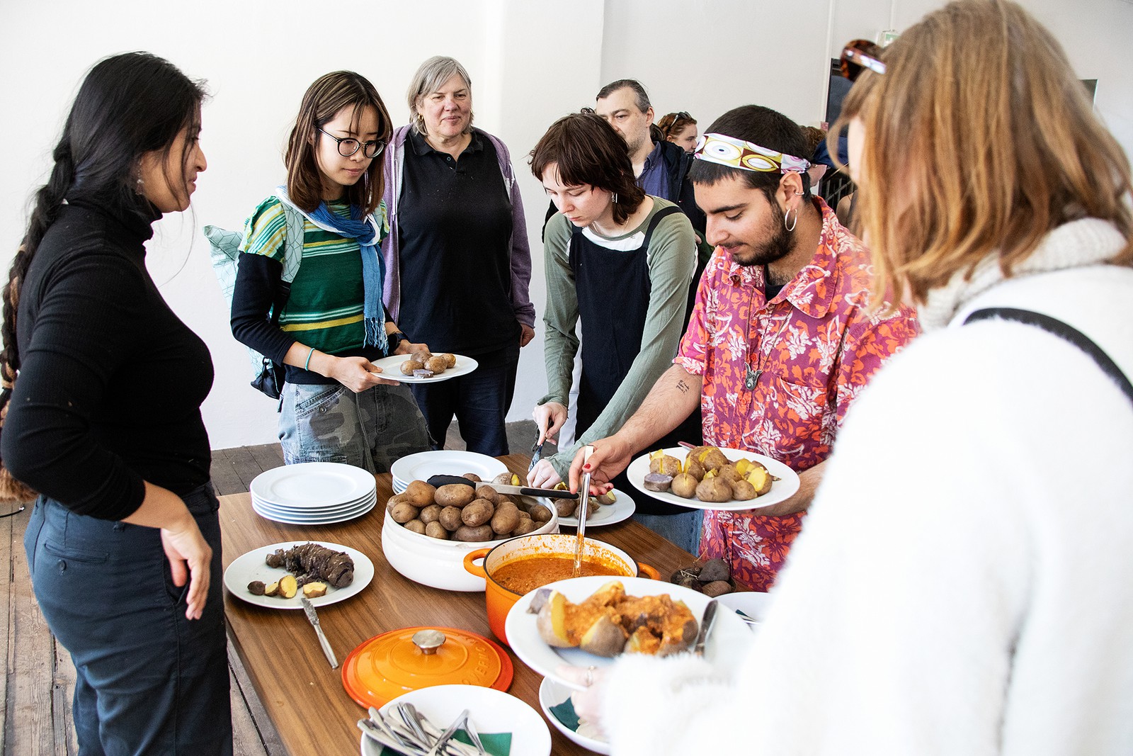 Afterwards, Lunch: boiled and lacto-fermented potatoes (vegan) and sauces (vegetarian)
