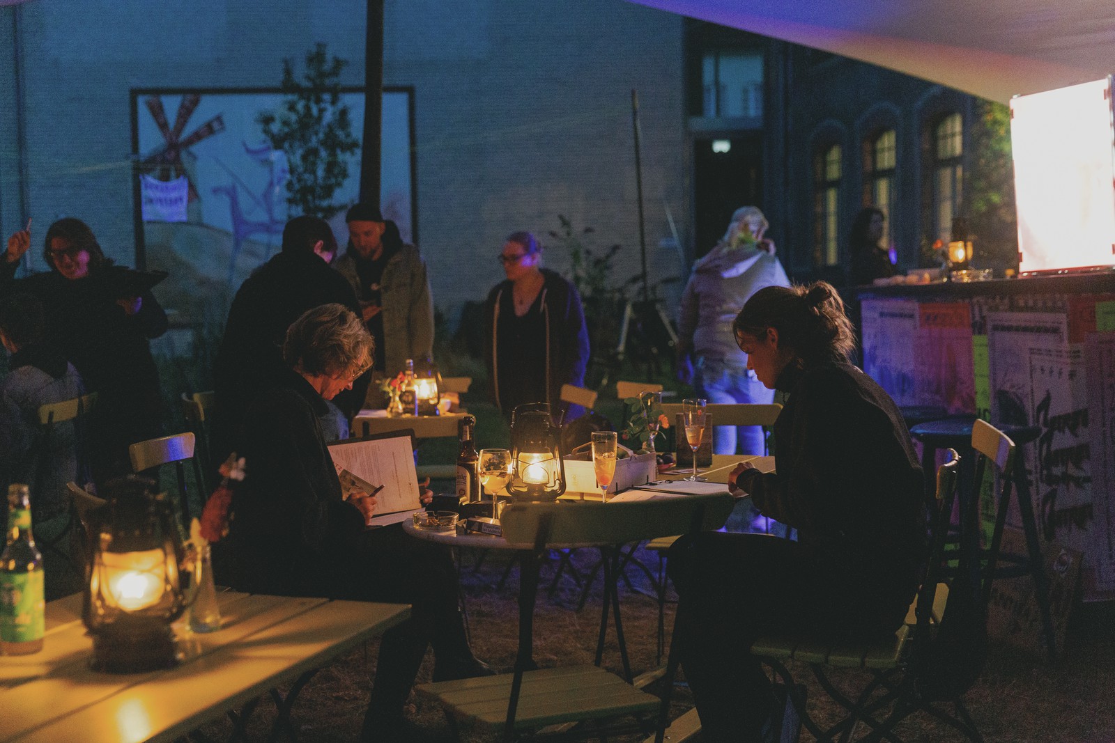 Das Kunstprojekt Schatz GmbH von Djoana Weimann und Josie Overton hat mit seinen sorgfältig ausgearbeiteten Fragebögen und viel Fingerspitzengefühl schon unzählige funkelnde Momente der Verbindung und des angeregten Austauschs geschaffen. Beim diesjährigen Finale der Queer Bar laden sie dazu ein, mit den anderen – vielleicht schon oft gesehenen – Gästen auf Grundlage der Fragebögen über gemeinsame Themen ins Gespräch zu kommen und neue Verbindungen zu entdecken. Generell gilt: Alles kann, nichts muss! Wer möchte, wird an den oder die perfekte:n Gesprächspartner:in vermittelt. Der Fragebogen kann aber auch für sich selbst ausgefüllt werden, um dabei auf neue Gedanken zu kommen und anschließend mit nach Hause genommen zu werden. Alle anderen sind herzlich dazu eingeladen, die letzte Queer Bar dieses Jahres mit einem eisgekühlten Pink-Roses-Drink in der Hand und bei Gesprächen mit Tischnachbar:innen zu feiern.