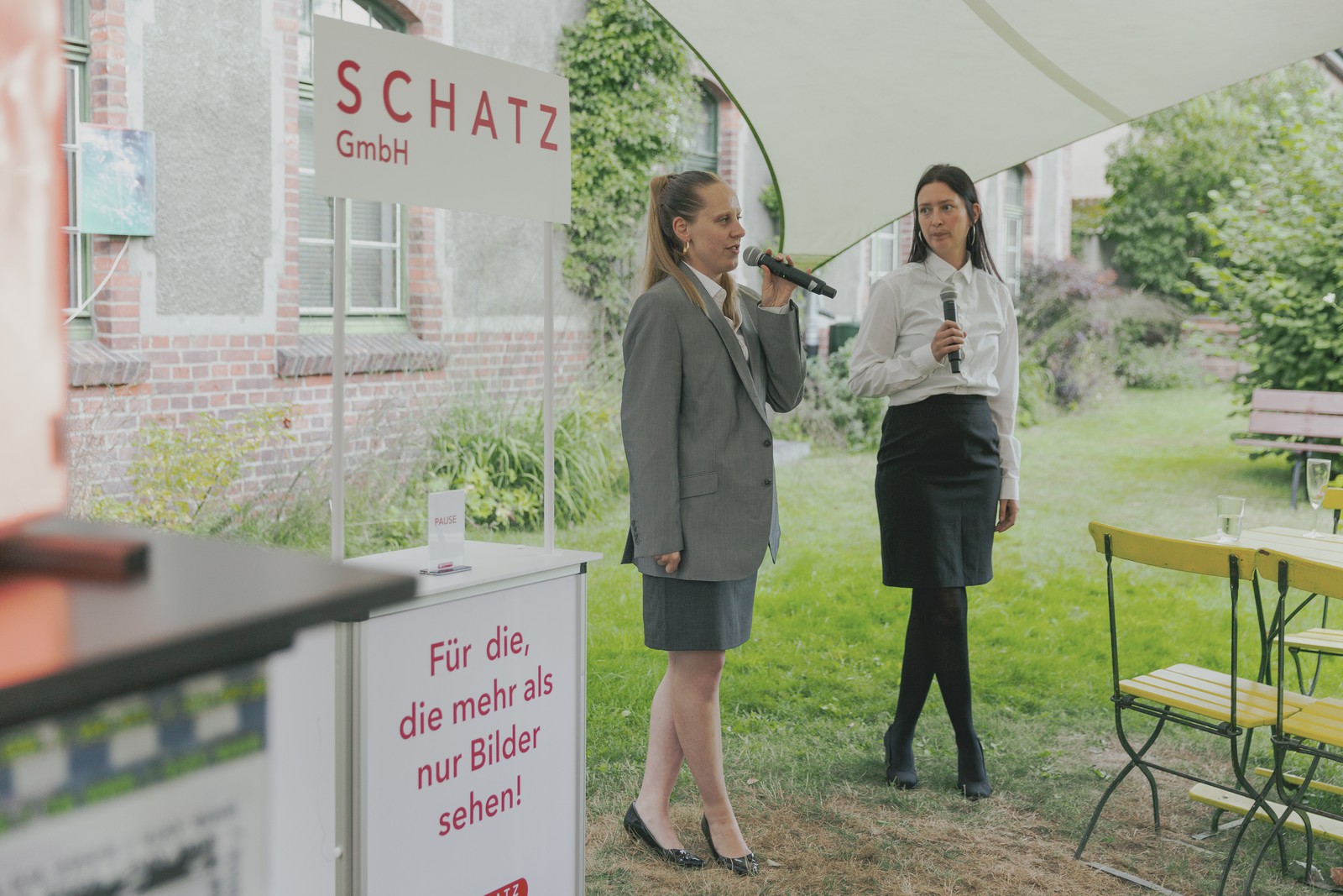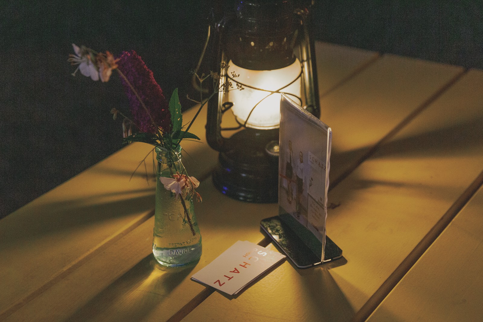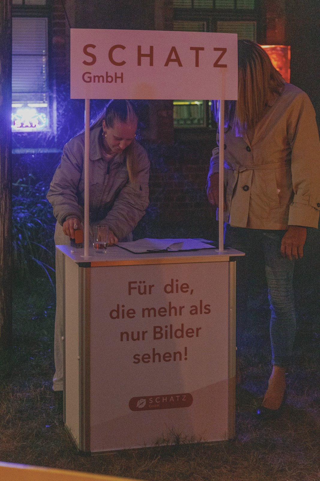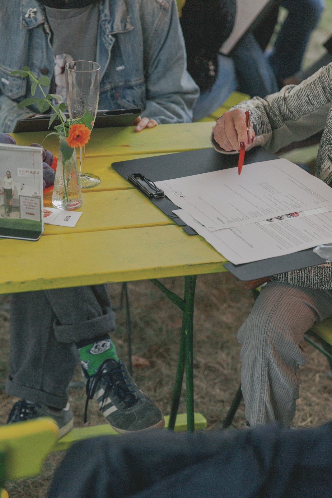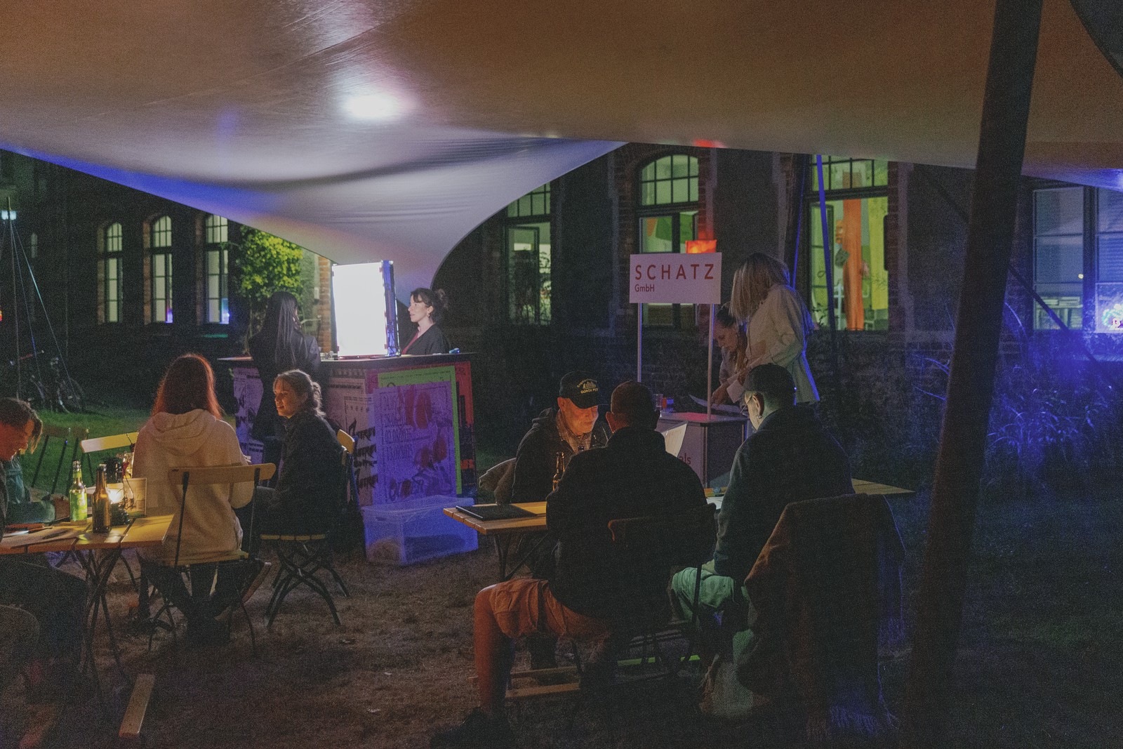 Das Kunstprojekt Schatz GmbH von Djoana Weimann und Josie Overton hat mit seinen sorgfältig ausgearbeiteten Fragebögen und viel Fingerspitzengefühl schon unzählige funkelnde Momente der Verbindung und des angeregten Austauschs geschaffen. Beim diesjährigen Finale der Queer Bar laden sie dazu ein, mit den anderen – vielleicht schon oft gesehenen – Gästen auf Grundlage der Fragebögen über gemeinsame Themen ins Gespräch zu kommen und neue Verbindungen zu entdecken. Generell gilt: Alles kann, nichts muss! Wer möchte, wird an den oder die perfekte:n Gesprächspartner:in vermittelt. Der Fragebogen kann aber auch für sich selbst ausgefüllt werden, um dabei auf neue Gedanken zu kommen und anschließend mit nach Hause genommen zu werden. Alle anderen sind herzlich dazu eingeladen, die letzte Queer Bar dieses Jahres mit einem eisgekühlten Pink-Roses-Drink in der Hand und bei Gesprächen mit Tischnachbar:innen zu feiern.