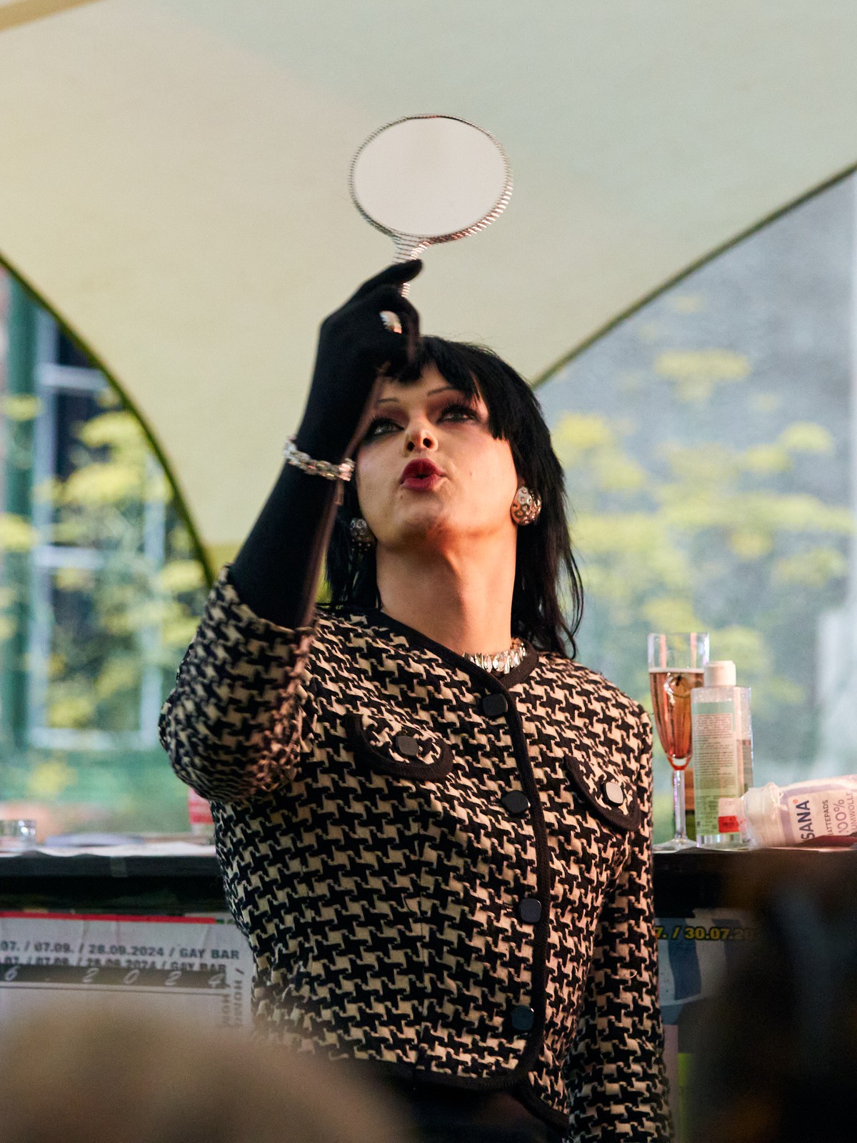 Im Sommer 2023 war AmyLu DeVil zum ersten Mal Special Guest der QUEER BAR. Bereits damals sorgte sie mit ihrer Show für große Begeisterung und reges Interesse – ihre Lip Sync-Performances, die sie mit persönlichen Geschichten über ihren Werdegang als Drag Queen kombinierte, ließen die Augen aller Anwesenden leuchten. AmyLu tritt dabei nicht nur als Bühnenperson auf, sondern verbringt den Abend auch im direkten Gespräch am Tresen oder Tisch inmitten der Gäste-Gemeinschaft. Damit wird klar, wie vielfältig Drag auch jenseits der Show ist – oder wie sehr die Bühne ein Teil von Geschlechteridentitäten, die wir für selbstverständlich halten.