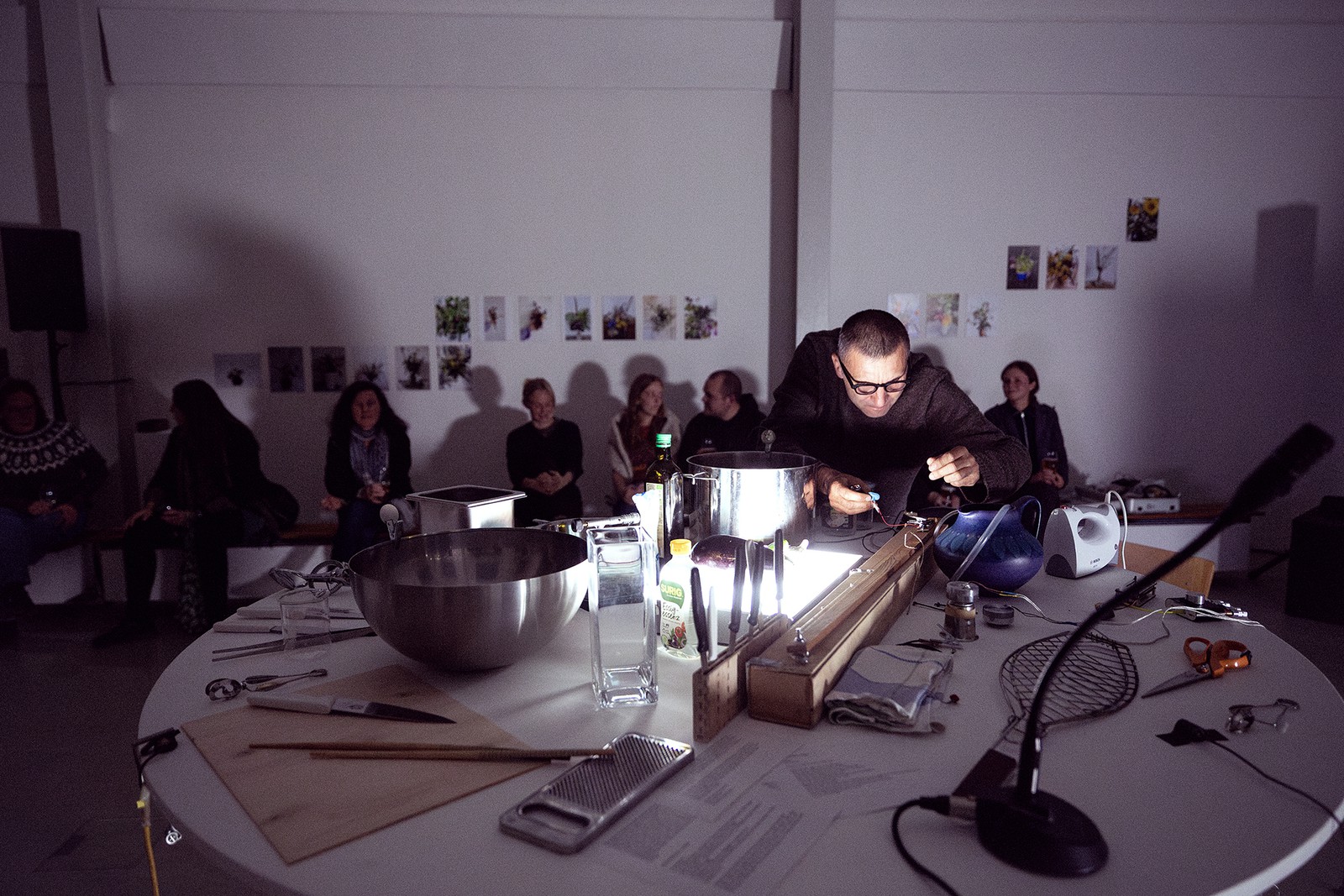 The day culminated in the Sotto’Olio – Sonified Kitchen — a performative collaboration between Maya Minder and sound artist Dominique Leroy. In this immersive setting, the sounds of chopping, sizzling, and fermenting were transformed into a live composition, merging culinary gestures, sonic experimentation, and collective cooking. The performance invited participants to prepare Sotto’Olio, following a cooking score where sound and movement became part of the recipe itself.