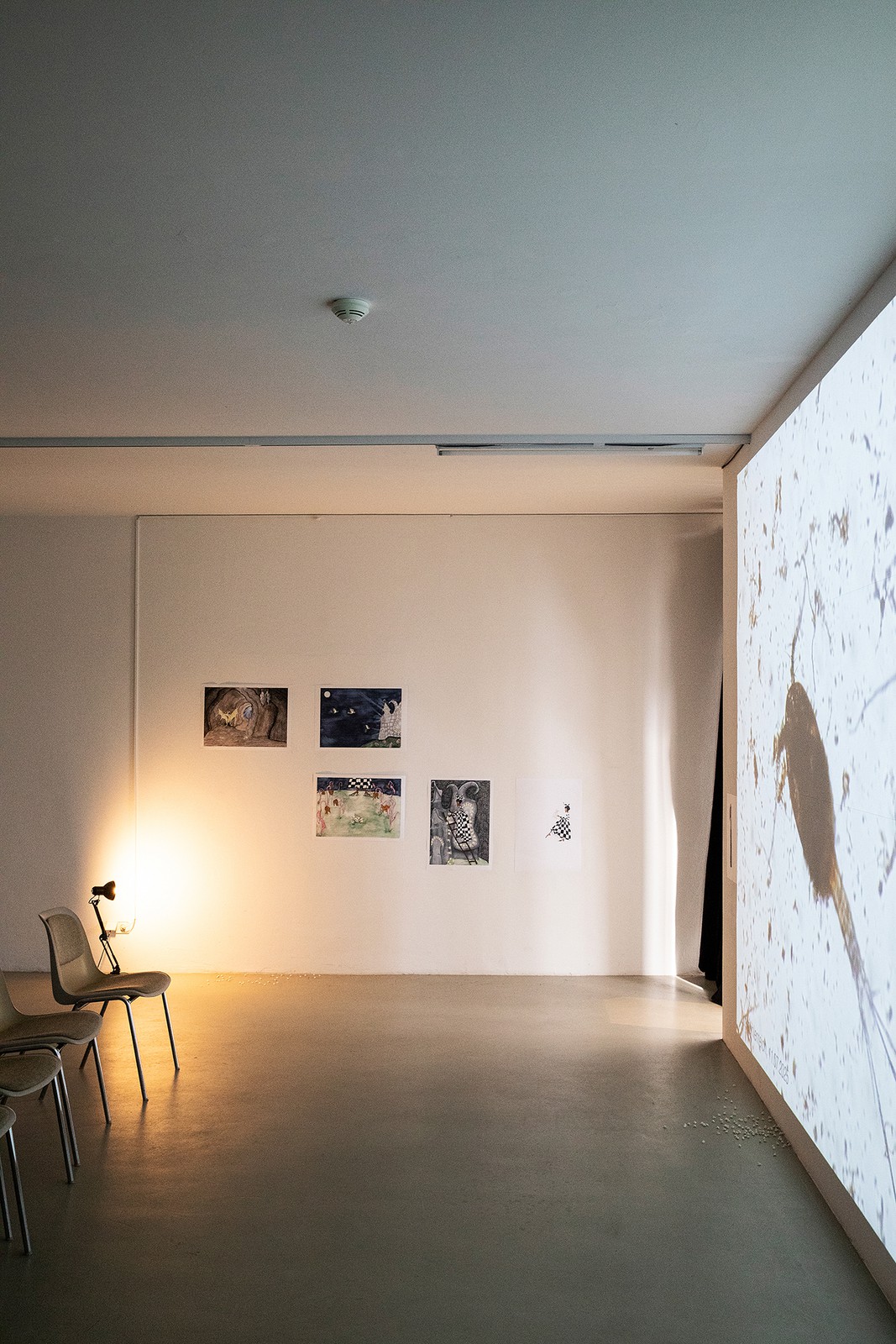 The installation remaining in the exhibition space documents this process and brings the aesthetic and scientific approaches of the two researchers into a common visual language—as a living interface between field research, illustration, and speculative knowledge production. Video recordings of the water samples, including the plankton found, can be viewed in the cinema room in the exhibition hall.