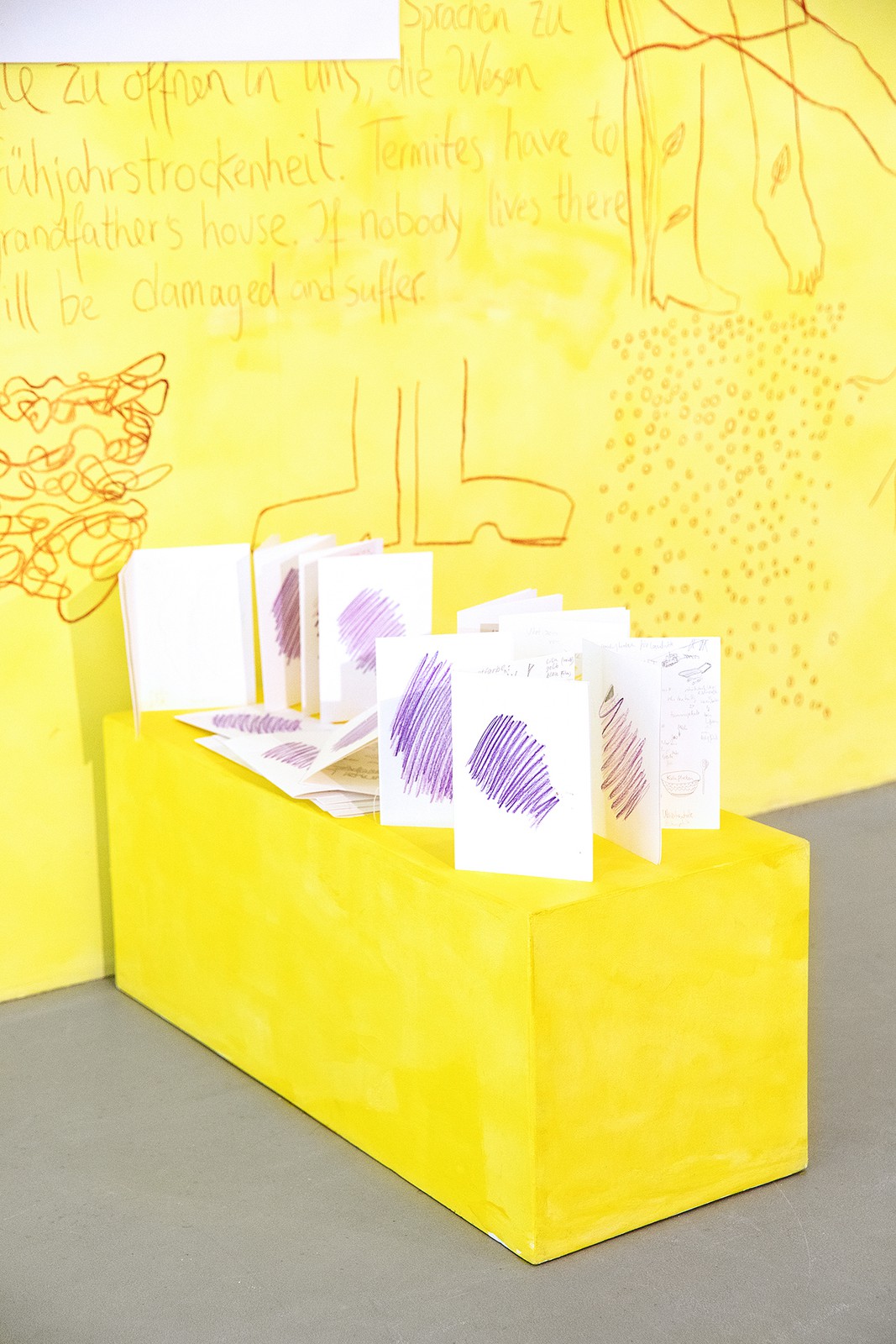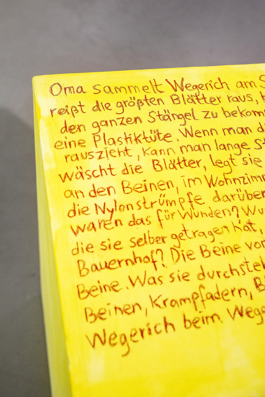The work deals textually with concepts from the Autumn Assembly. On this basis, independent playful appropriations were created, which are installed throughout the building in the form of A4 printouts. The texts function less as explanatory labels than as situated approximations that shift perception, establish references, and linguistically remap the location.